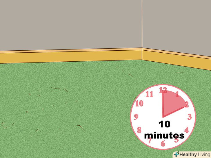Зачекайте, поки килим не просочиться засобом для чищення. після того, як ви нанесете засіб на килим, почекайте близько 10 хвилин. Килим добре просочиться миючим засобом, якщо ви використовуєте рідкий розчин. Якщо ви використовуєте сухе засіб для чищення, за вказаний період часу суха суміш вбере в себе неприємні запахи і видалить плями.- Якщо ви обмежені часом, ви можете не чекати 10 хвилин. Однак ваш килим стане чистішим, якщо ви зробите це.