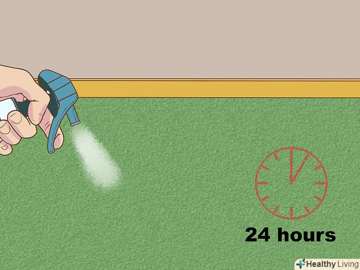 Розпиліть рідкий засіб або рівномірно посипте сухим засобом забруднену ділянку килима. нанесіть сухий засіб рівномірним шаром на забруднену ділянку. Якщо ви використовуєте рідкий засіб для чищення килима, розпиліть його на ділянку килима, який ви хочете почистити. [9] щоб почистити весь килим, розділіть його на три або чотири ділянки і почистіть один за іншим.- Якщо вам необхідно почистити весь килим, почніть з найдальшої ділянки від дверей і поступово рухайтеся вперед у напрямку до виходу.