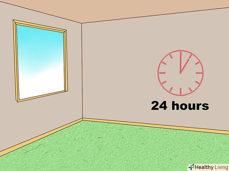 Проведіть тест на невеликому і непомітному ділянці килима. Перед тим як використовувати засіб для чищення килима, обов'язково проведіть тест на непомітній ділянці килима, щоб переконатися, що він стійкий до подібного впливу. Виберіть непомітну ділянку килима і нанесіть на нього невелику кількість засобу. Залиште засіб на килимі на 24 години. [12]- Після закінчення зазначеного періоду часу оцініть результат. Зверніть увагу на те, чи не змінився колір килима на обраній ділянці. Через 24 години оцініть стан килима, чи не змінилися його колір або якість.