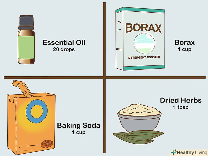 Змішайте порошок Бури і соду для випічки. якщо ви хочете приготувати засіб для чищення килимів, яке буде здатне видалити найстійкіше забруднення і неприємний запах, змішайте суміш Бури з содою для випічки. Додайте улюблену суміш сухих трав або квітів для приємного аромату. Змішайте в мисці наступні інгредієнти: [7]- 1 склянка (400 г) бури;