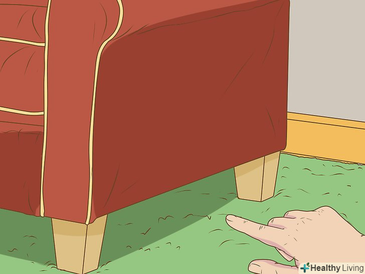 Проведіть тест на невеликому і непомітному ділянці килима. Перед тим як використовувати засіб для чищення килима, обов'язково проведіть тест на непомітній ділянці килима, щоб переконатися, що ваш килим стійкий до подібного впливу. Не забувайте про це, коли справа стосується чищення килимів, тканини або оббивки. Завдяки попередньому тесту, ви не будете переживати про стан килима після його Чищення. Для проведення пробного тесту необхідно: [8]- Виберіть непомітний ділянку килима, наприклад, проведіть тест на ділянці, який знаходиться під меблями.