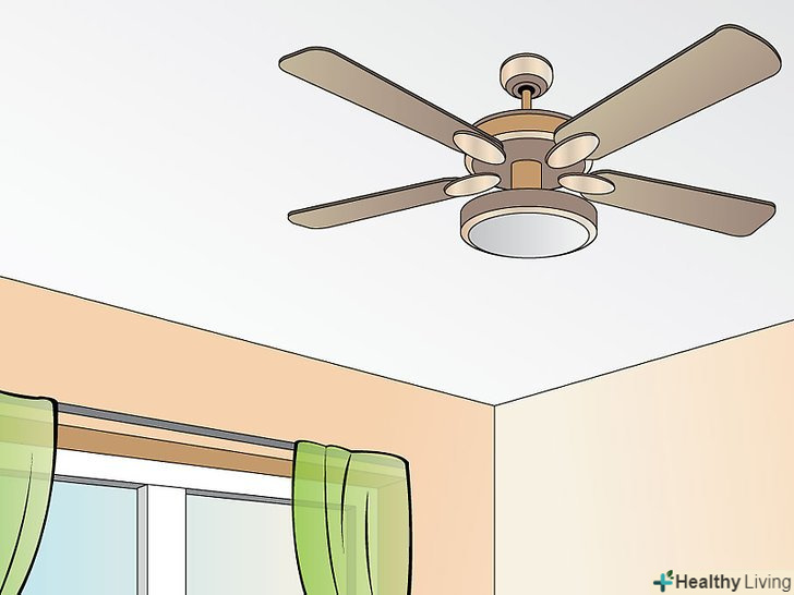 Вирішіть, де ви хочете встановити вентилятор. зазвичай, їх встановлюють посередині кімнати, щоб потік повітря рівномірно розподілявся по кімнаті. Для забезпечення оптимального повітряного потоку у великій кімнаті, ймовірно, знадобиться установка двох вентиляторів. Не встановлюйте вентилятор над ліжком, щоб не піддаватися додатковому ризику.