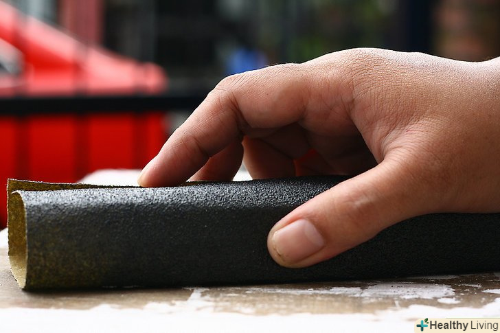 Оберніть 100-й наждачним папером робочу поверхню Шліфмашинки. закріпіть її щільно, переконавшись, що робоча поверхня натягнута, щоб ваша наждачний папір не збивалася в купу і не слабшала.