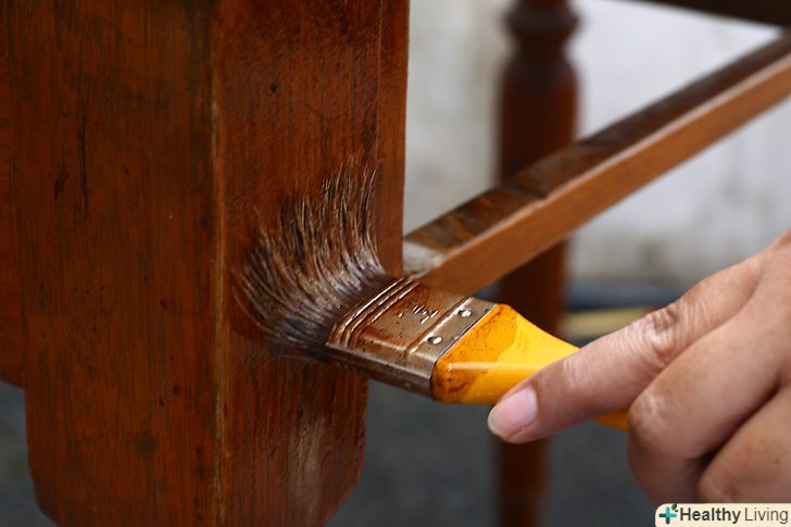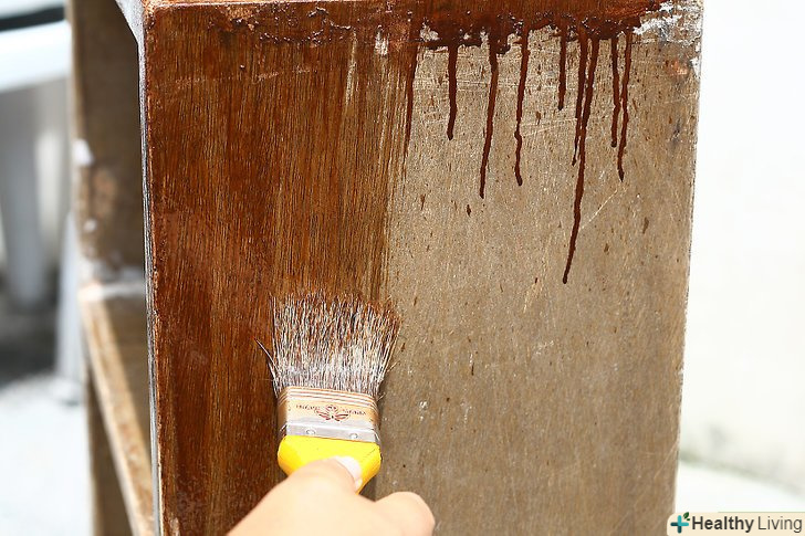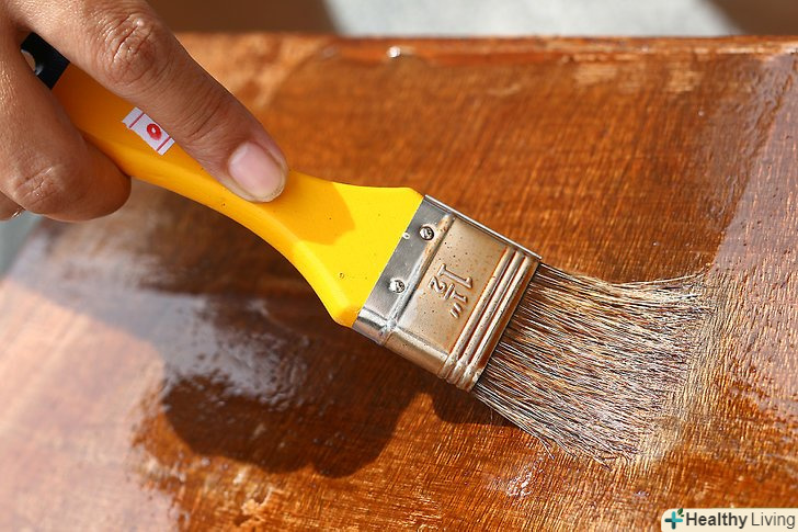 Опустіть край кисті в морилку і нанесіть тонкий шар фарби на поверхню деревини. завжди фарбуйте уздовж волокон хоч короткими хоч довгими мазками. Працюйте над однією частиною деревини в один час, не намагайтеся охопити все відразу.