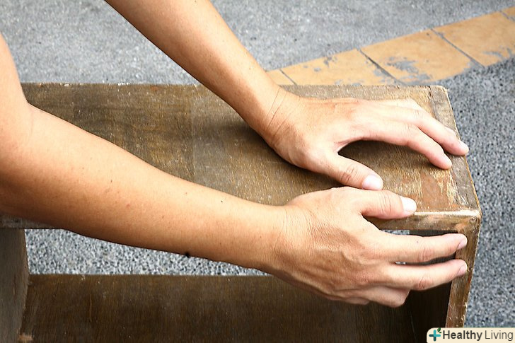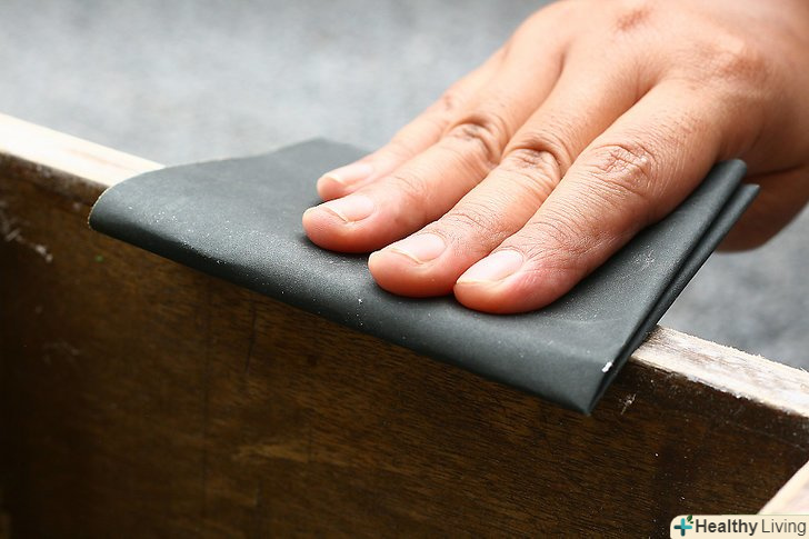 Тримайте шматок 100-го наждачного паперу в руці так, щоб задня частина паперу перебувала в контакті з вашою долонею і пальцями. зашліфуйте будь важкодоступний елемент поверхні, направляючи руху наждака уздовж деревних волокон.