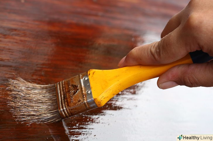 Нанесіть шар поліуретану на Вашу морену ділянку, використовуючи дводюймову (5 см) кисть. працюйте пензлем довгими мазками і у напрямку волокон. Фарбуйте ділянки від 6 до 12 дюймів (15-30 см.).