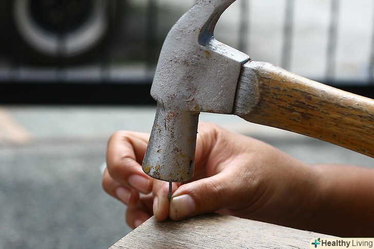 Помістіть невеликий кінець цвяха на верхівку будь-якого виступаючого цвяха. проштовхніть кінцевий цвях під поверхню, б'ючи по капелюшку іншого цвяха.