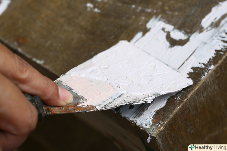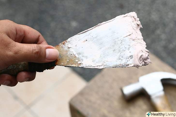 Розкачайте кульку шпаклівки на краю шпателя. застосовуйте наповнювач для тріщин, сучків і цвяхів до тих пір, поки шпаклівка не вирівняється з поверхнею. Використовуйте шпатель для розгладження.