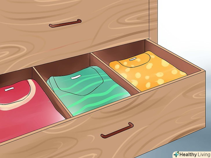 Зберігайте речі, якими ви рідко користуєтеся, поза досяжністю. Доступ до предметів, якими Ви користуєтеся найчастіше, повинен бути найпростішим. Все, що ви не використовуєте можна поставити на підлогу або помістити над головою. Завдяки цьому ви зможете легше знайти те, що вам потрібно. [4]- У деяких випадках потрібно повністю переробити шафа або книжкову полицю. Коли ви закінчите роботу, ви будете раді, що зробили це, оскільки ваш шафа або полиця будуть виглядати як нові.