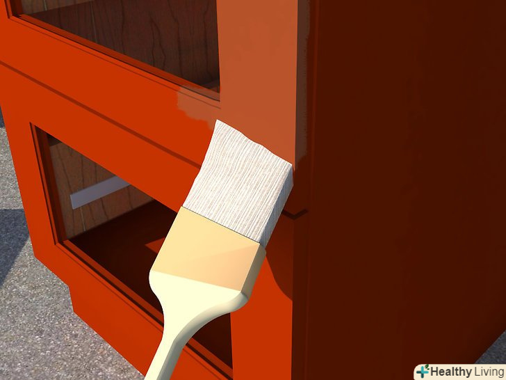 Нанесіть захисний шар. візьміть щітку і рівномірно нанесіть на поверхню меблів поліуретановий захисний шар. Коли закінчите, дайте йому повністю висохнути.- Візьміть стару тканину або футболку без волокон, щоб ще більше рознести захисний шар і рівномірно натерти його по всій поверхні меблів.