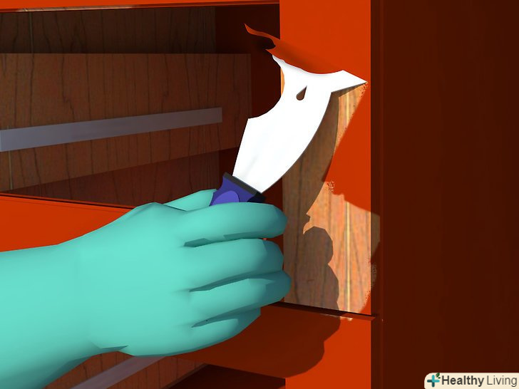 Зніміть стару обробку. коли ви зніміть фарбу, прийде черга видаляти обробку, що ховалася під фарбою. Візьміть кисть і нанесіть рідину для зняття обробки, а потім візьміть сталеву вату і все відшліфуйте. Після всього цього дайте меблів повністю висохнути.- Тепер, коли з'явилася деревина, починайте шкребти уздовж волокон, а не проти них, щоб не пошкодити дерево.