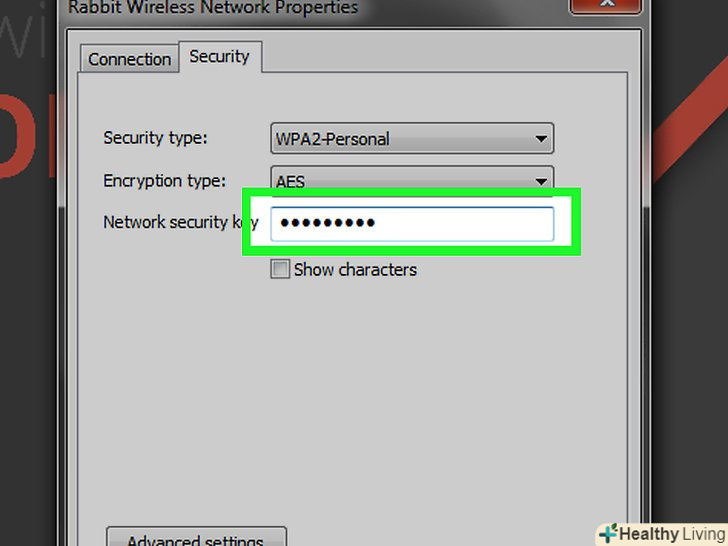Введіть пароль.якщо ви вибрали метод шифрування WPA2, тоді для підключення вам потрібно ввести пароль. Якщо ви використовуєте особистий комп'ютер, можете відключити приховані символи, що спростить введення пароля.