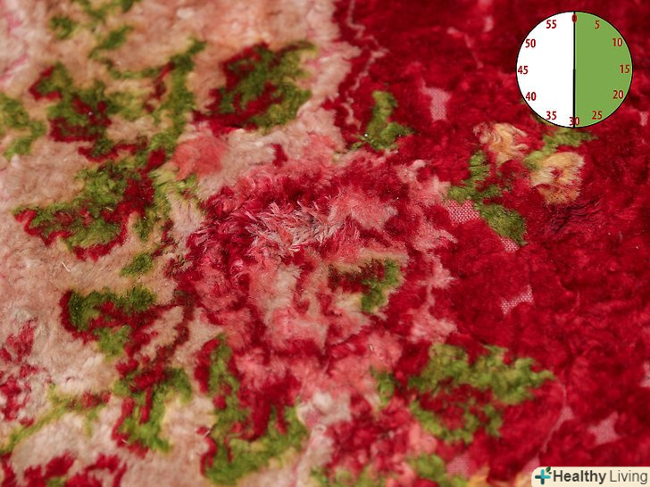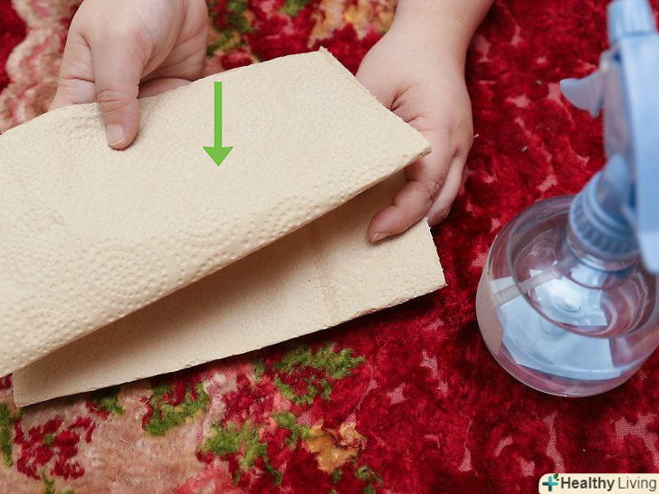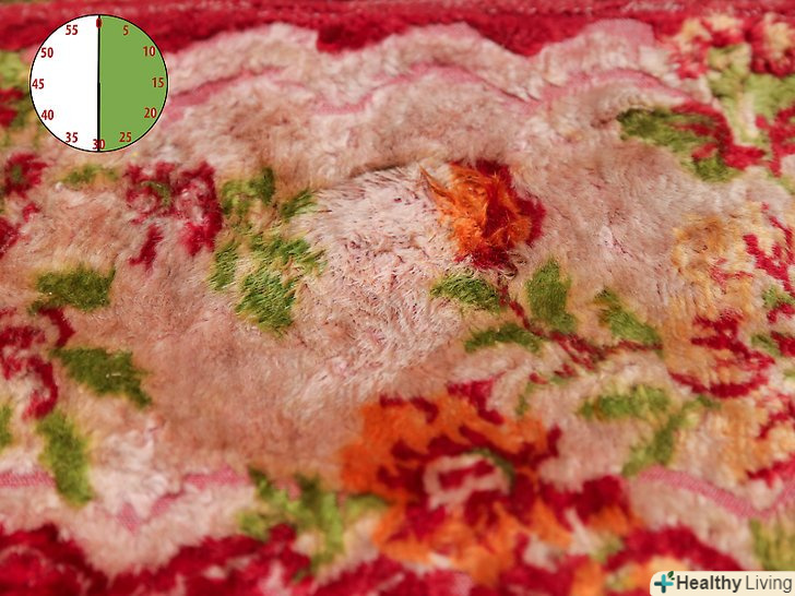 Висушіть килим. покладіть пару паперових рушників на мокру пляму і помістіть щось важке зверху. Через кілька годин приберіть паперові рушники і залиште пляму відкритим. Не ходіть по килиму поки він сохне. Після того, як килим висохне, перевірте, чи вдалося вам видалити пляму повністю. Якщо ні, повторіть процес. [3]- Пропилососьте килим, коли він висохне, щоб ділянка, на якому раніше була пляма, не відрізнявся від килима в цілому.