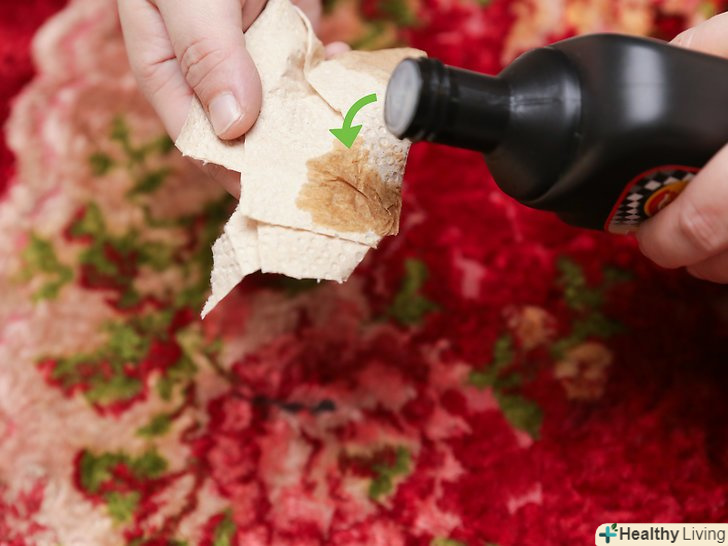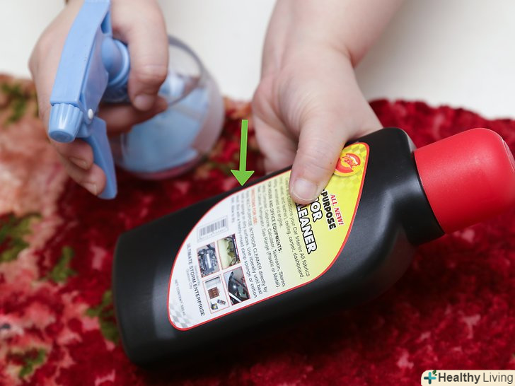 Придбайте засіб для чищення килимів або плямовивідник. придбати такий засіб можна в магазині побутової хімії. Подивіться асортимент таких засобів в магазині, що знаходиться недалеко від вашого будинку. Виберіть засіб, який задовольнить ваші очікування, наприклад, дасть швидкий результат, видалить старі плями, має приємний запах, не містить в складі шкідливі хімічні речовини і так далі. [4] крім того, в магазині побутової хімії можна знайти засоби, які мають різні ціни. Виберіть для себе оптимальний засіб.- Як правило, в інструкції до засобу для чищення килимів можна знайти інформацію про те, які види плям видаляє обраний засіб. Зверніть увагу на склад засобу, який ви будете використовувати.