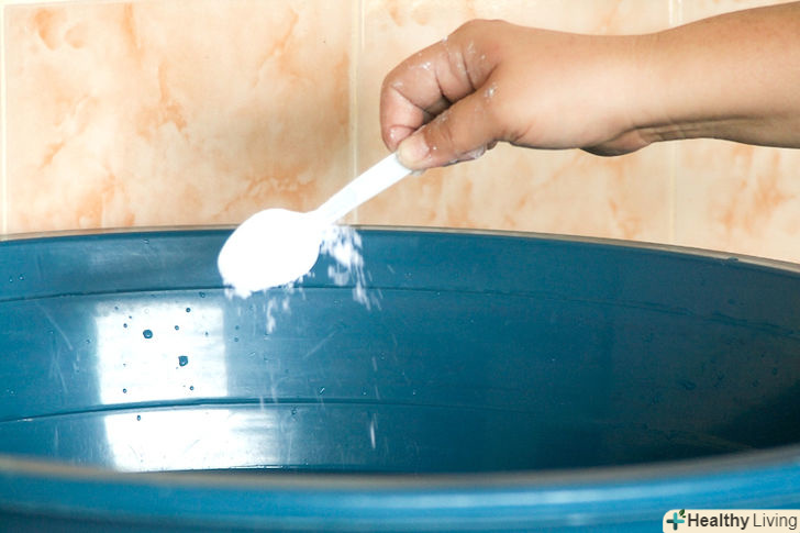 Наповніть ємність водою, додайте в неї одну столову ложку прального порошку і розмішайте.