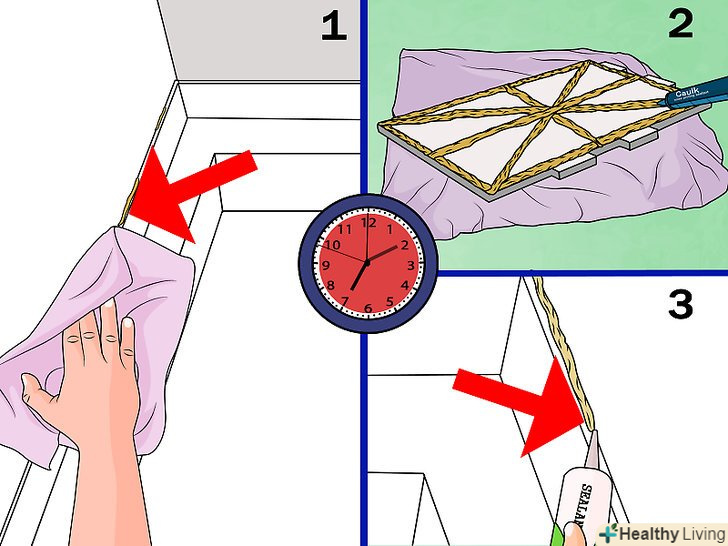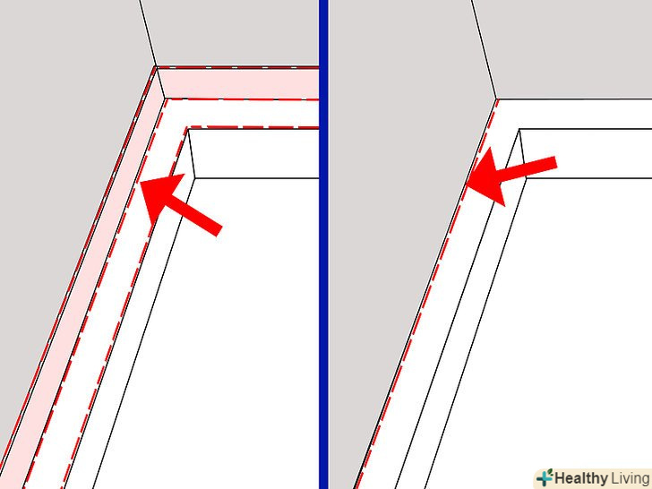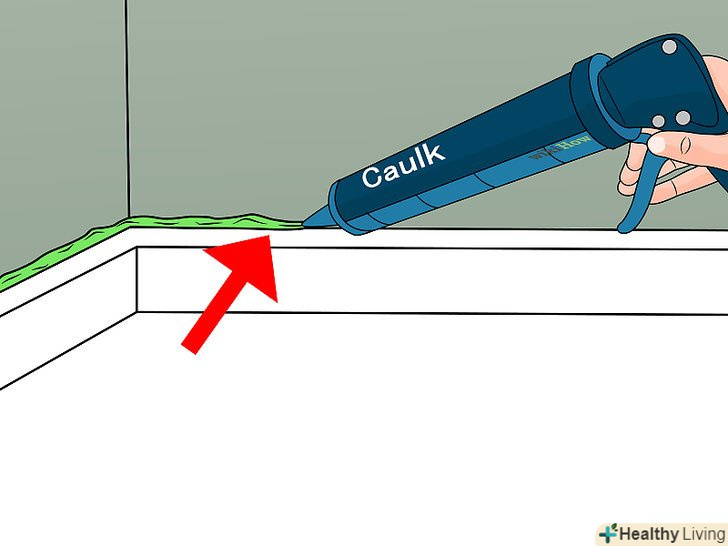 Ущільніть піддон шаром герметизатора. замажте ущільнювачем шов між піддоном і підлогою шаром товщиною з клейку стрічку. Також, використовуйте трохи герметизатора для місць, де використовуються цвяхи і шурупи. Витріть краплі герметизатора з піддону до такого як він висох.- Якщо ви виявите їх після того як вони висохли, зішкребіть їх нігтем або шпателем.