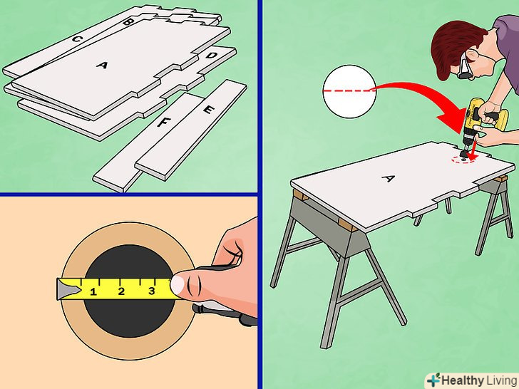 - Вирізання отворів буде простіше, якщо ви розмістите панель на підставках. Підставте під панеллю пару опорних елементів, або використовуйте лист фанери, щоб панель не прогнулася і не зламалася. Вирізати отвори повільно за допомогою пилки.