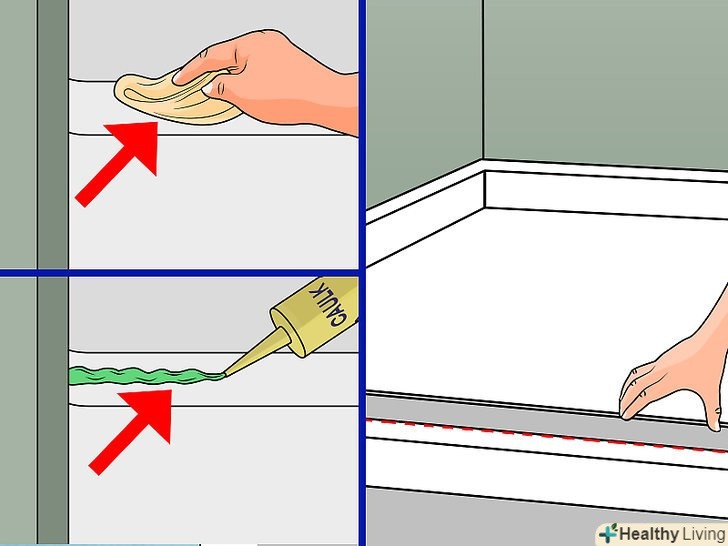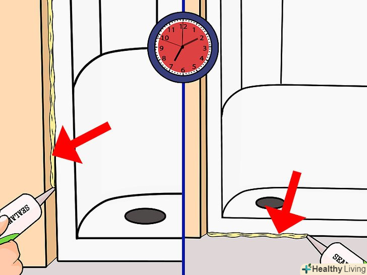 Загерметизуйте всі шви. як тільки кабінка закріплена, використовуйте герметизатор для ванни або плитки, щоб замазати всі щілини в місцях, де кабінка стикається зі стінами і підлогою для водонепроникності. Використовуйте тонкий шар герметизатора для фланців і дозвольте висохнути протягом 24 годин перед тим як піддавати його впливу води.