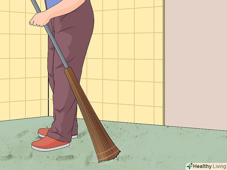 Очистіть підлогу і стіни від сміття перед тим як встановлювати кабіну. використовуйте віник або пилосос, щоб очистити будівельне сміття і пил до того як ви почнете встановлювати кабіну. Також, використовуйте інструмент для зіскрібання фарби або ніж для шпаклівки, щоб очистити Старий герметизатор і клей, і переконайтеся, що ви повністю висушили поверхню перед тим як встановлювати піддон.- Якщо під час установки водовідштовхувальних панелей або піддону поверхня волога, то, є ймовірність гниття дерева та інших проблем в майбутньому. Вам необхідно упевнитися, що поверхня абсолютно суха до того як ви почали встановлювати елементи душової кабіни, незалежно від того, який у вас тип кабіни.