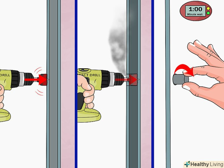 Просвердлите пробні отвори в кабіні. де б ви не позначили трубу і місця кріплень, використовуйте свердло в 3 мм, щоб зробити пробні отвори. Свердліть повільно і обережно, щоб не потріскалася обробка.- Важливо свердлити пробні отвори ззаду кабінки. Це полегшить вам завдання, коли вам буде необхідно вирізати більші отвори ножівкою для кріплень.