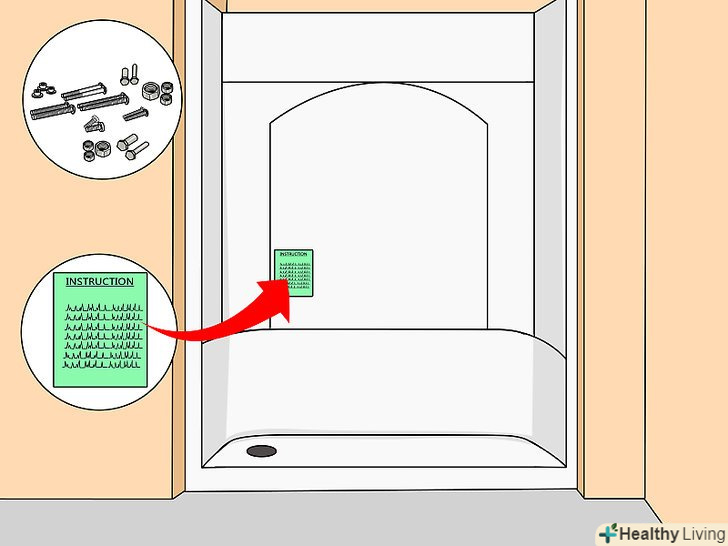Спробуйте виставити панелі. для деяких моделей, панелі повинні бути виставлені в спеціальному порядку, щоб кабіна була щільніше і більш водонепроникна. Найкраще попередньо зібрати її, щоб переконатися, що все на своїх місцях і попрактикуватися в збірці до того як прикріплювати панелі до стіни. Уважно прочитайте інструкції, щоб зрозуміти, чи це стосується вашої моделі.- Спробуйте з'єднати панелі, щоб переконатися, що вони стають на свої місця. Деякі моделі виготовлені, щоб підходити під певний розмір, в той час як інші можуть бути виготовлені для установки з габаритним діапазоном. В інструкції має бути опис розмірів, що підходять для вашої кабіни.