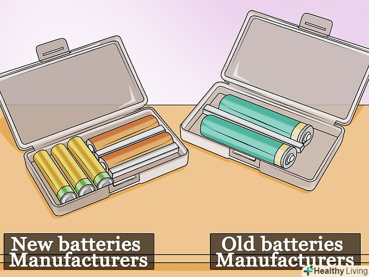 Розсортуйте батарейки по виробникам і датою виготовлення. Батарейки різного типу і різних виробників здатні реагувати один з одним, що може привести до витоку заряду і інших пошкоджень. При зберіганні одноразових (не перезаряджаються) батарейок не тримайте разом нові і використані батарейки. [1] найкраще зберігати їх у різних коробках. Якщо ви збираєтеся використовувати одну коробку, помістіть кожну батарейку в окремий пластиковий пакетик.