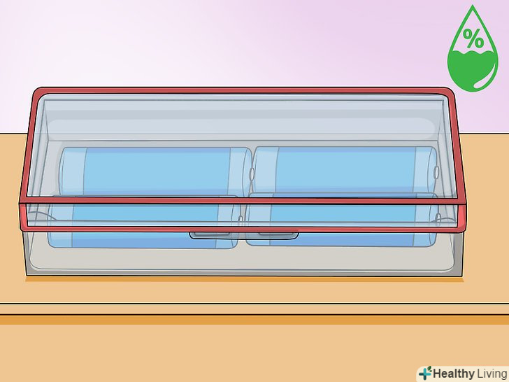 Контролюйте вологість повітря. при високій вологості повітря або небезпеки утворення конденсату (наприклад, в холодильнику) Зберігайте батарейки в герметичному контейнері. Лужні батарейки можна зберігати при помірній вологості (35-65% відносної вологості). [10] більшість батарейок інших видів краще зберігаються при меншій вологості. [11]