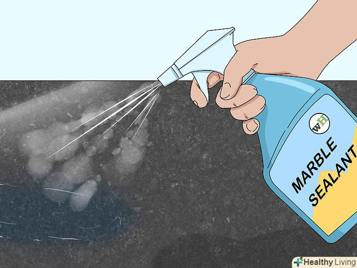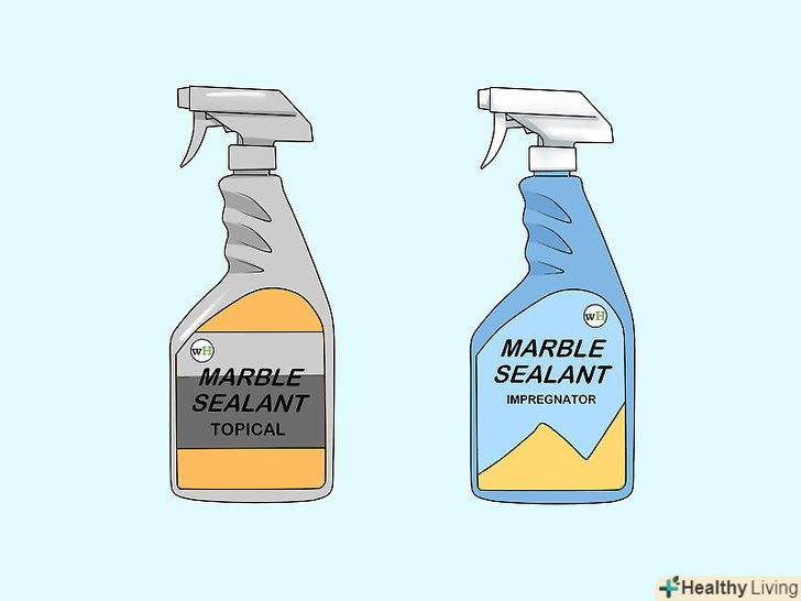 Виберіть герметик. Герметик може залишатися на поверхні або вбиратися в мармур. Поверхневі герметики утворюють зовнішній шар і запобігають утворенню плям, в той час як просочують герметики проникають всередину і відштовхують воду і жир, але при цьому дозволяють мармуру «дихати». Як правило, стільниці покривають просочують герметиками, а для підлоги та інших поверхонь краще використовувати поверхневі герметики. [14]- Не покривайте герметиком штучний мармур, так як він більш стійкий і не вимагає додаткового захисту. Герметик погано поєднується з деякими видами штучного мармуру. [15]