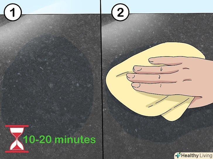 Витріть залишки герметика. Подивіться на ємності з герметиком, як довго слід почекати. Після того як пройде рекомендований час, витріть поверхню мармуру сухою ганчіркою. [16]- Більшості герметиків потрібно 10-20 хвилин. [17]
