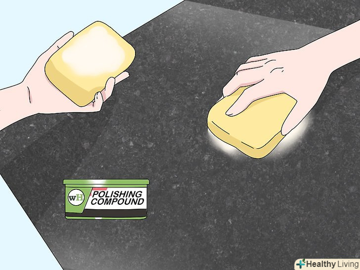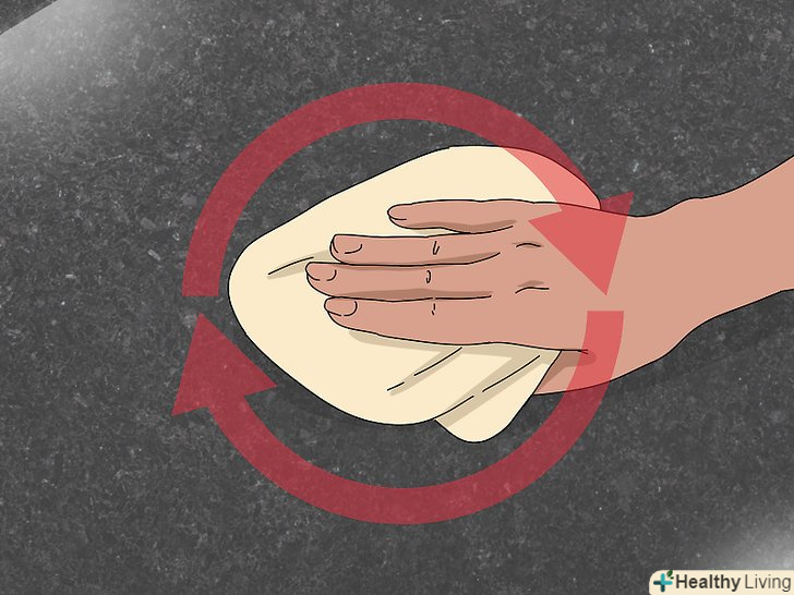 Розітріть засіб для полірування. якщо ви використовуєте м'яку ганчірку, натискайте на неї і поліруйте поверхню круговими рухами. Якщо Ви користуєтеся полірувальною машиною, повільно переміщайте її по колу. Після того як ви обробите плоску поверхню, відполіруйте краю м'якою ганчіркою (при цьому також робіть кругові рухи). [11]- Якщо ви використовуєте полірувальну машину, виставте малу або середню швидкість.