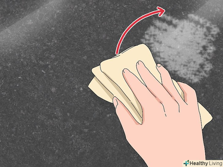 - Якщо на мармурі утворилися плями, видаліть їх за допомогою засобу для виведення плям, перш ніж приступати до полірування. Врахуйте, що після використання подібного засобу слід почекати хоча б 24 години, перш ніж перейти до наступного кроку. [3]