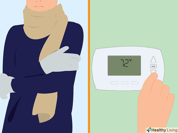 Полюбите холод. з кожним градусом, на який ви знизите температуру, ваші витрати будуть зменшуватися на 3%. Одягніться тепліше. Йдучи з дому, встановлюйте термостат на 5-10 градусів. [19]