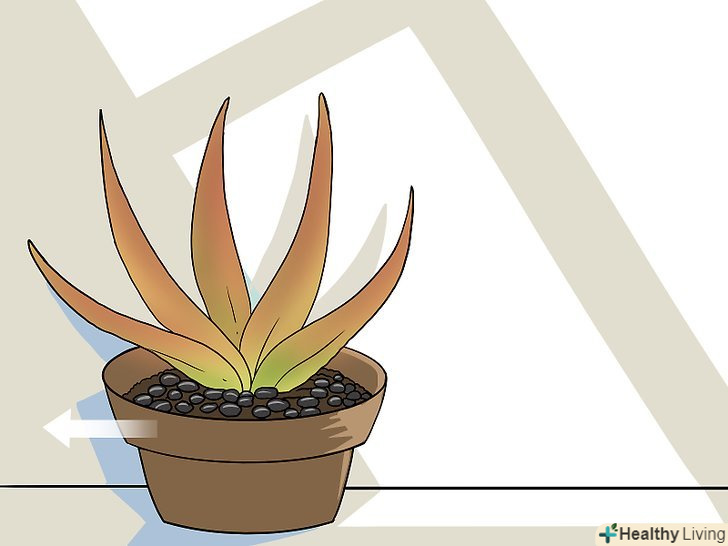 Перемістіть рослину. перенесіть алое вера в таке місце, яке висвітлюється лише непрямим сонячним світлом. [29]- Якщо рослина отримує в основному штучне, а не природне сонячне світло, збільште відстань між ним і джерелом світла. Можна також винести алое вера назовні, щоб воно висвітлювалося непрямим сонячним світлом, а не штучним джерелом. [30]