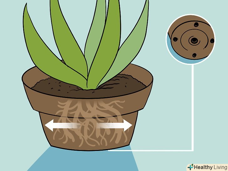 Виберіть горщик на одну третину більше, ніж коренева система. зайва грунт утримує воду, що може викликати кореневу гниль в майбутньому, тому краще взяти горщик поменше. [9]- Коріння алое вера ростуть в основному горизонтально, а не вертикально. [10] Алое Віра виростає досить масивним, і під його вагою горщик може перекинутися. Зважаючи на це постарайтеся знайти широкий, а не глибокий або вузький горщик. [11]