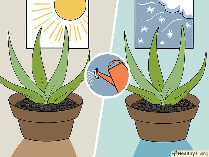 Змінюйте режим поливу відповідно до сезону. Алое Віра потрібно більше води в більш теплу пору року і менше в холодні місяці. Менше поливайте рослину восени і взимку, особливо якщо ви живете в прохолодному кліматі. [25]