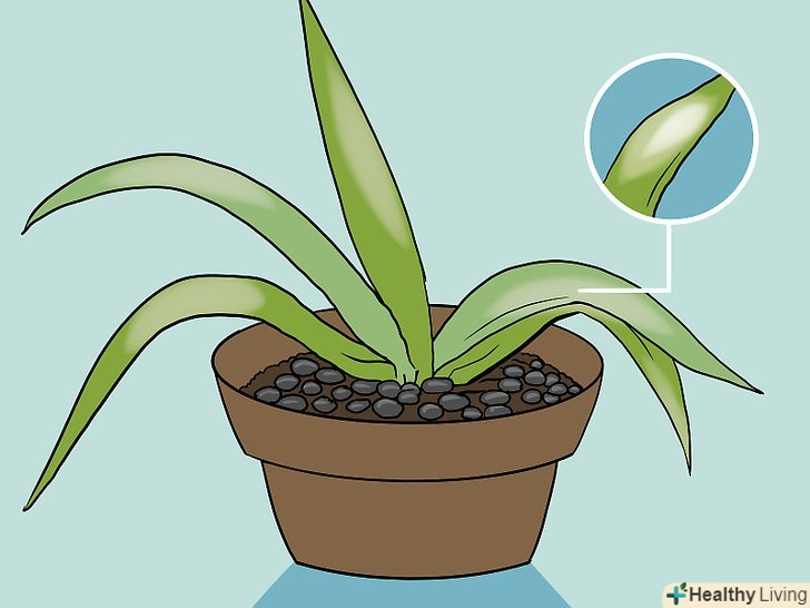 Перевіряйте листя. Як і інші сукуленти, алое Віра запасає воду в своїх листках. Якщо ви виявите, що листя поникли або стали майже прозорими, можливо, рослині потрібна вода. [26]- Тим не менш, ті ж ознаки можуть свідчити про кореневої гнилі через надмірне поливу. Згадайте, коли ви поливали рослину останній раз. Якщо це було недавно, необхідно вийняти алое вера з горщика і перевірити, чи немає у нього кореневої гнилі. [27]