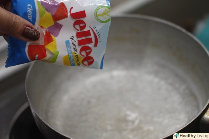 Засипте 4 пакетика чистого желатину і розмішуйте до повного розчинення.