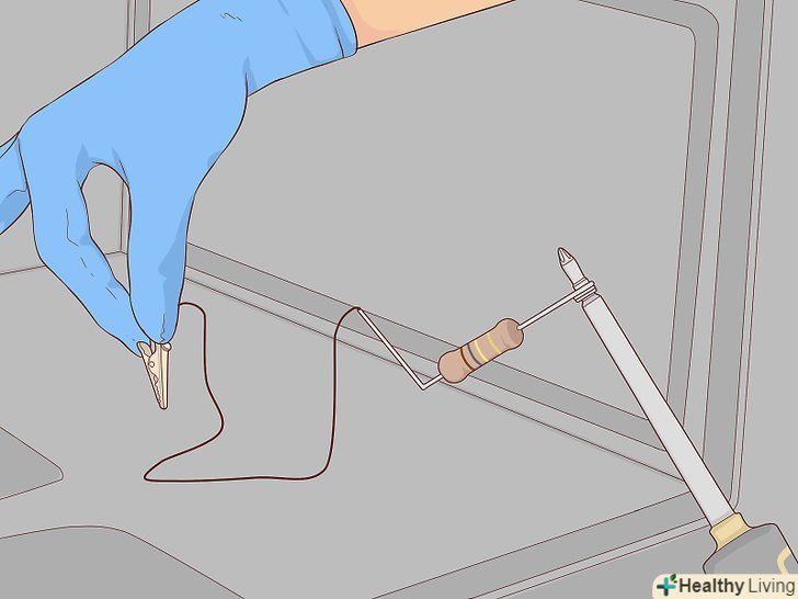 Пристебніть до наконечника Викрутки резистор. використовуйте резистор опором 100 кОм і потужністю 25 Вт, або вище. Це сповільнить розряд і дозволить запобігти можливому пошкодженню викрутки або деталей мікрохвильової печі. [9]