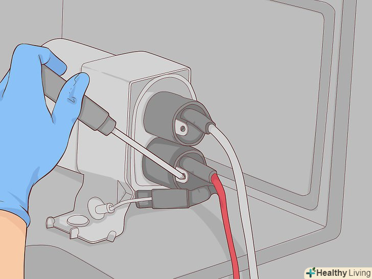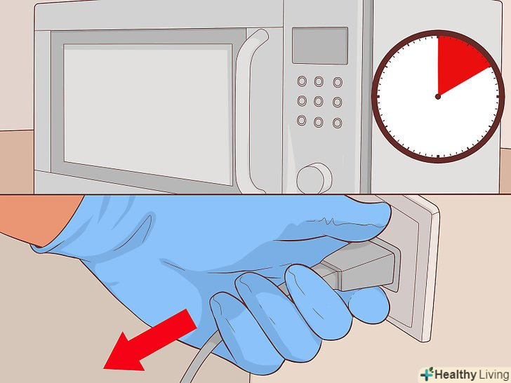 Зачекайте кілька хвилин (бажано). в конденсаторі може залишитися небезпечний для життя заряд, навіть після того як ви відключите мікрохвильову піч. Хоча після відключення печі заряд повинен стікати з конденсатора, його розрядка може зайняти кілька хвилин. Навіть після того, як ви почекаєте, не покладайтеся на те, що конденсатор повністю розряджений. Можливий збій, або може виявитися так, що дана міра безпеки не передбачена на вашій моделі. [6]- Перш ніж продовжувати, ще раз переконайтеся в тому, що мікрохвильова піч відключена від мережі.