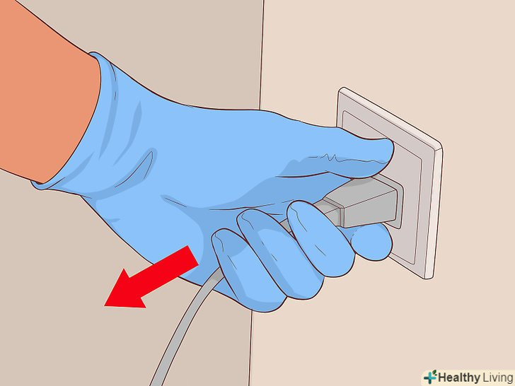- Одягніть взуття з гумовою підошвою і подумайте про те, щоб використовувати непровідні струм гумові рукавички.