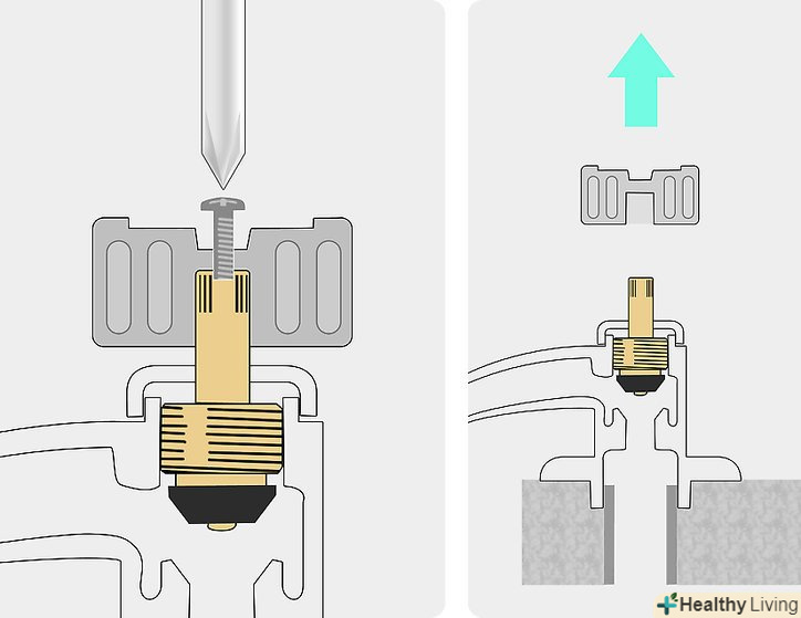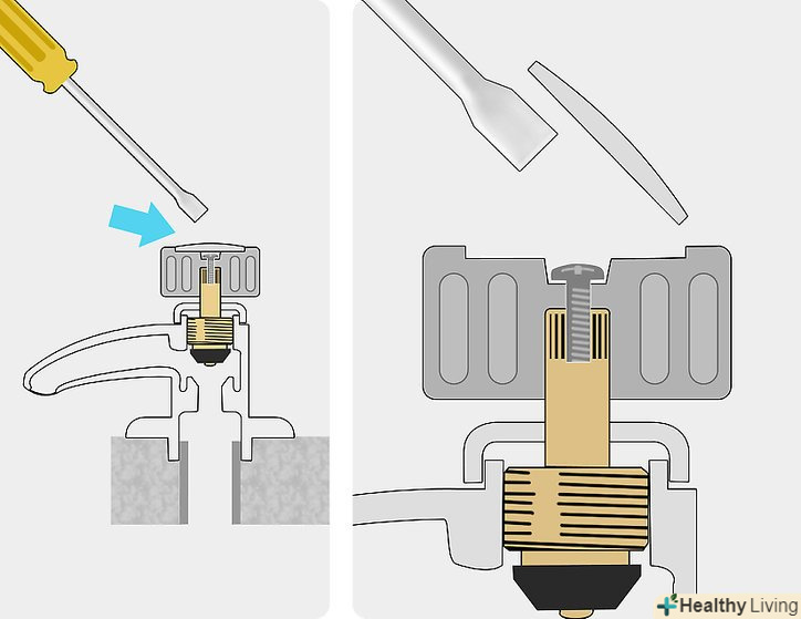 Візьміть мінусову викрутку для того, щоб зняти кришку з першої ручки змішувача.