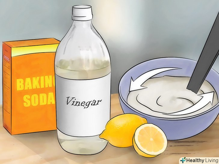 Використовуйте питну соду, лимонний сік і оцет. іноді необхідно виконати особливу прибирання поверхонь поруч з унітазом, щоб видалити в'їдаються неприємні запахи. Для цих цілей рекомендується використовувати суміш з харчової соди, лимонного соку і оцту. Такі продукти успішно усувають неприємний запах.- Зробіть пасту з рівних частин лимонного соку і харчової соди. Найкраще використовувати сік свіжого лимона. Зміщуйте речовини до отримання однорідної пастоподібної консистенції. [10]