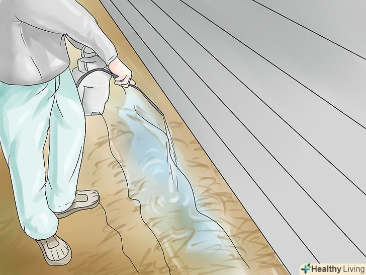 Зволожите дуже суху, піщану або пористу грунт навколо будинку перед застосуванням термідора для того, щоб максимізувати глибину його проникнення і тим самим підвищити якість обробки.- Вам, можливо, буде потрібно полити водою перераховані вище типи грунтів для того, щоб гарантувати рівномірний розподіл термідора під час розпилення його навколо будинку.