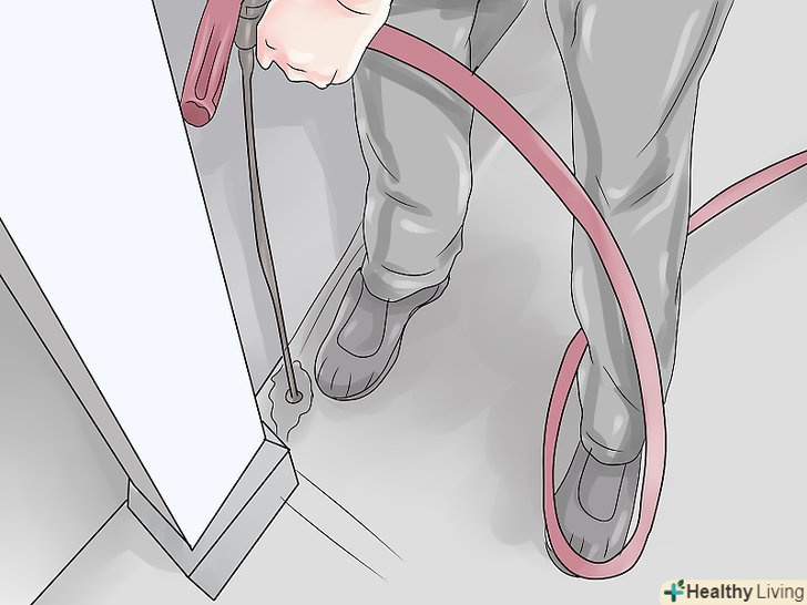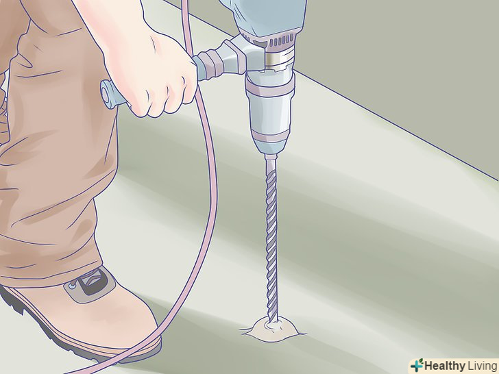 Просвердлите поверхні, які необхідно обробити: наприклад, такі як бетонні доріжки або плити.- Це дасть вам можливість обробити Термідором місця під фундаментом. Така обробка виконується за допомогою обладнання для штикування - спеціального обладнання для впорскування хімічних речовин в глибокий грунт або подібні важкодоступні місця, обробка яких за допомогою розпилювального бака неможлива.