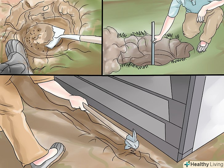Подрихліте ущільнену землю навколо будинку для того, щоб вода не розтікалася під час застосування термідора.- Вам, можливо, буде потрібно, виконати отвори або підкопати землю для отримання 5-8 сантиметрів глибини. Завдяки цьому Термідор зможе проникнути в дерево або фундамент.