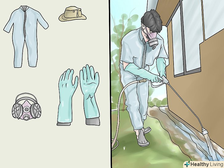 - Одягайте головний убір, який пізніше можна буде вимити, респіратор-напівмаску з картриджем для комбінованого захисту від пилу і газу, а також полівінілхлоридні (ПВХ) або нітрилові рукавички, які будуть повністю закривати ваші руки.