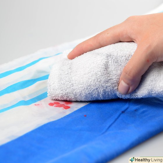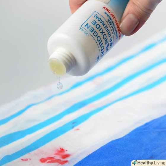 Налийте трохи перекис водню на заплямовану тканину. зазвичай добре справляється розчин перекису 3%.