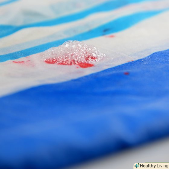 Зачекайте кілька хвилин, поки перекис водню буде шипіти і пузиритися, таким чином хімічний засіб вступає в реакцію з кров'ю і виводить її.