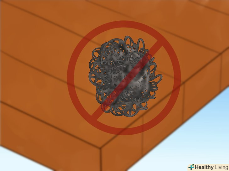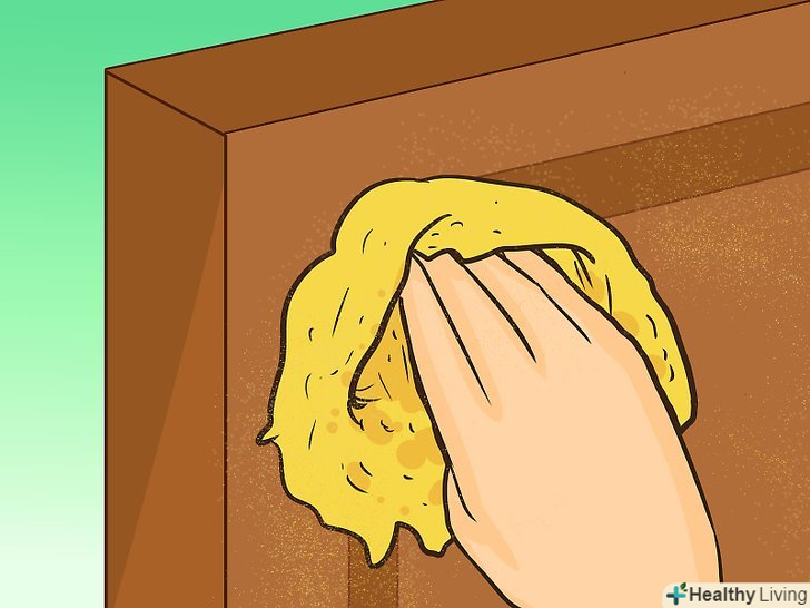 Витріть тирсу, щоб деревні частинки не потрапили в герметик і не застрягли в ньому. використовуйте суху ганчірку або спеціальну липку серветку для видалення пилу з деревини.- Уникайте потрапляння води на необроблене дерево, тому що вона може змінити структуру деревини.