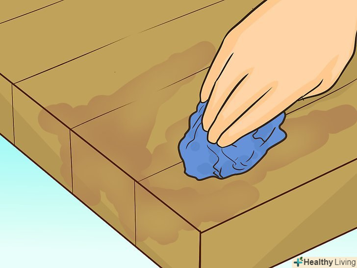 При бажанні, перш ніж застосувати герметик, нанесіть на дерево плями. ви, можливо, захочете нанести на деревину плями перед герметизацією, так як після герметизації зробити це буде неможливо.- Для нанесення плям зазвичай застосовуються ганчірки.